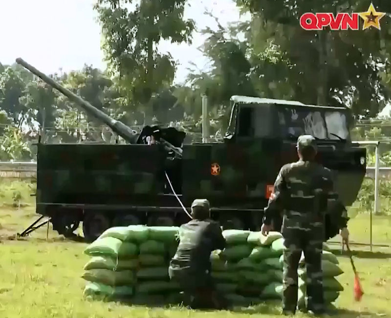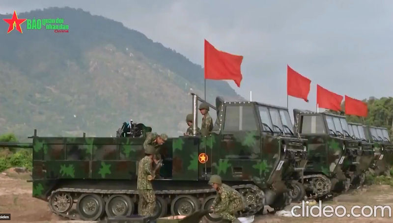 Vietnam People Army still fields many refurbished M548 tracked carriers captured from the Vietnam War. While many remain in logistics , some found a new role: direct fire support. Such carriers carry autocannon and howitzers of various calibers from 37mm to 105mm. On 16 April 2019, at Chi Lang shooting range, An Giang province, Military Zone 9 held a real-time shot of the task of science and technology with integrated 85mm, 76mm, 37mm-2 PPK and replicated 105mm cannon, PKMS gun on M548 vehicle. At 2 pre-arranged battlefields, 4 combinations respectively: M548-85mm; M548-76mm; M548-37mm-2; M548-105mm is conducted test shooting at distances 900m, 800m, 600m and 500m. The firing results show that the gun and artillery rack system ensures the quality, works well, the stability of the vehicle when operating and each shot is within the allowed safety limit, ensuring excellent safety of people. and equipment. 4 teams and 6 individuals were awarded certificates of merit by Commander of Military Region 9.
