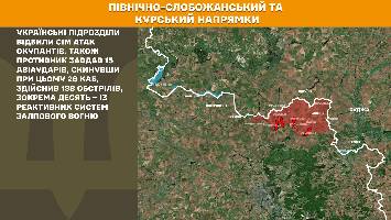 In the Northern Slobozhansky and Kursky directions, Ukrainian soldiers repelled four Russian assault actions, two more clashes are ongoing. In addition, the enemy launched 13 air strikes, dropping 36 controlled airstrikes, and carried out 138 shells to positions of Ukrainian troops and settlements, including three from re-fire systems.