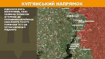 In the Kupyans триkomu direction, the Russian enemy tried to push Ukrainian units out of occupied positions near Kupyansk and Golubivka. One battle is going on.