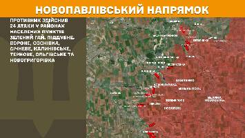 In the Novopavlovsk direction, Ukrainian defenders stopped 14 Russian attacks in the areas of settlements Zeleny Gai, Andriyivka-Klevtsove, Vorone, Sosnivka, Novomikolaivka, Voskresenka, Kalinivskke and Novogrigorivka, seven more clashes are still ongoing.