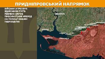 Ukrainian units repelled three Russian attacks in the Pridniprovsk direction.