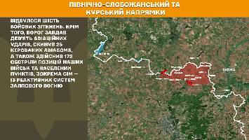 Ukrainian defenders repelled one Russian attack in Northern Slobozhansky and Kursky directions. The Russian enemy launched six aviation strikes, dropped 15 controlled aviation bombs and carried out 133 shells.