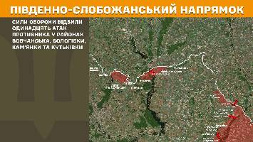 In the South Slobozhansky direction, Ukrainian units stopped 12 Russian attacks near Vovchansky, Vovchanskih Hutoriv, Stroivka, Kamyanka, Western and towards Bologivka and Kolodyazny, another confrontation is ongoing.
