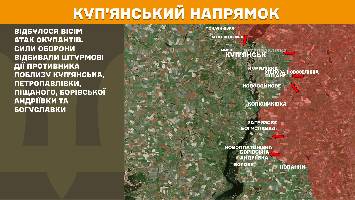In the Kupyansky direction, Ukrainian soldiers repelled six Russian attacks in the areas of Stepova Novoselivka, Sand, Green Grove, Nova Kruglyakivka and towards Petropavlivka and Kurylivka, at the moment three clashes continue.