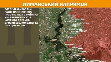 In the Lyman direction, Ukrainian soldiers stopped 14 assault actions of the harbniks near the settlements of Grekivka, Kopanka, Karpivka, Medium, Kolodiazi, Deryilove, Mirne and Novoselivka. Three more fighting clashes are ongoing so far.