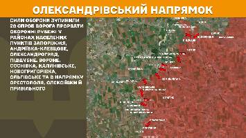 In the Oleksandrivsky direction, Ukrainian units repelled seven attacks in the areas of settlements Ivanivka, Filiya, Verbove, Novogrigorivka and Novomykolaivka.