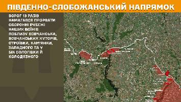In the South Slobozhansky direction, Ukrainian units prevented six Russian attacks near Vovchansky, Bologivka, Stroivka, Kamyanka and Kolodyazny, two more clashes are ongoing.