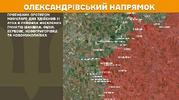 In the Oleksandrivsky direction, Ukrainian units repelled 16 attacks in areas of settlements Andriyivka-Klevtsove, Sosnivka, Verbove, Privilne, Novovasilivka, Oleksandrograd and Novogrigorivka. Two more clashes are underway.