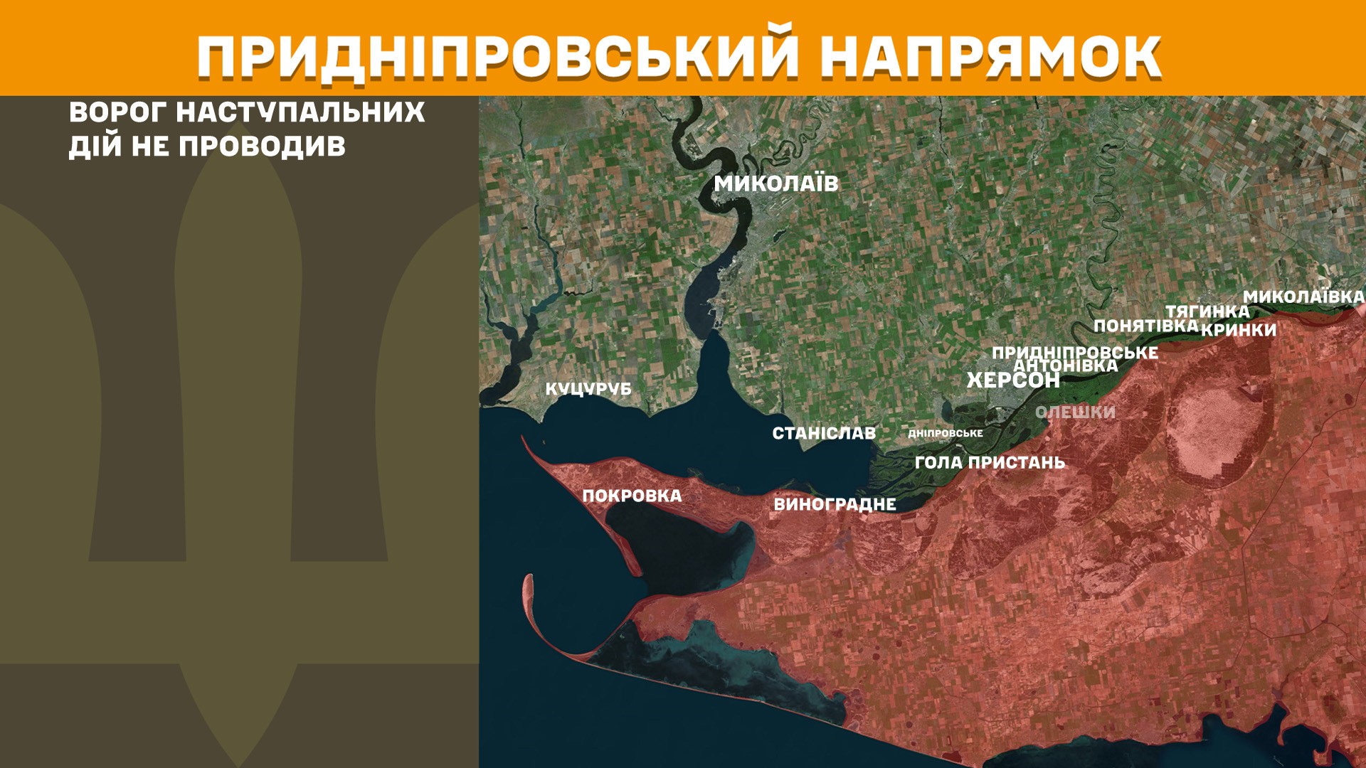 In the Pridniprovsky direction, the Russian enemy tried to approach the positions of Ukrainian defenders in the direction of the Antonivsky Bridge three times. The Russian invaders launched an air strike on Olgivka.