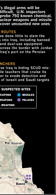 NOTE: Most of the information on Iraqi chemical-, biological- and nuclear-weapons production comes from intelligence gleaned from weapons inspections that essentially ended with the expulsion of UNSCOM inspectors in November 1998