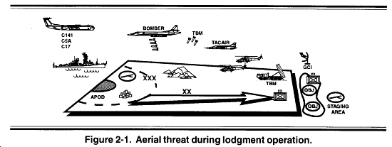 TBM delivery of persistent chemicals or tactical nuclear weapons could cut off support for forward forces. Medium-range missiles, like the Scud and its variants, could be used against Patriot units in rear areas, as well as against command, control, communications, and intelligence (C3I) nodes and logistics support facilities. Air defense of the lodgment area remains critical because the threat against it may exist throughout the operation.
