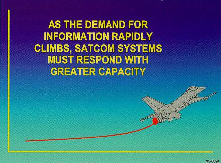 implications for communications. The price of advanced technology is often a greater dependence on rapid, high volume information transfer. Future DoD SATCOM systems must employ the technology required to provide maximum capacity to forces, using small, highly mobile terminals.