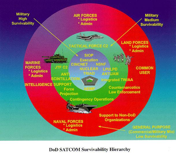 the threat to SATCOM has decreased. However, threat technology is now readily available to any nation. No two users have identical communications needs and their differing operational environments call for solutions designed with as much flexibility as possible. The warfighter's need for SATCOM spans the spectrum of conflict, from high to low survivability. It is likely that no single solution can meet all these needs. The DoD will have to field a range of services to properly supply the satellite communications needs of our future force.