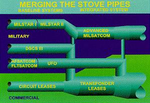 The evolution of DoD SATCOM has been characterized by development of distinct systems designed to meet the specific needs of individual or groups of users, resulting in a collection of single frequency band-based systems. The existing systems evolved over time, not as the result of a unified plan or architecture, but as a byproduct of the advance of technology. Because of this, systems are often termed "stove piped", i.e., providing separate, unique services to each user group.