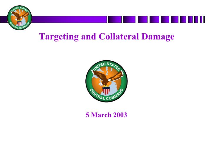 Senior Defense Official: Well, I happen to be a CentCom person speaking, but I think the briefing is a fair approximation of where we have come in the transformation of the use of military over the last -- even the last three or four years. And so I think the purpose of the briefing is to say bad things will still happen on the battlefield, but if we are asked to use military power in Iraq, our intent is to ensure that we keep those bad effects to the minimum.