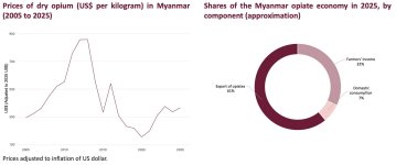 National farmgate prices for dry opium averaged about $365 per kilogram in 2025, more than double the level in 2019.