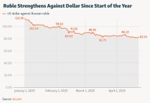 With the US dollar tanking in value amid global market turmoil since the Trump administration unveiled a massive tariffs package, the Russian ruble has risen sharply.