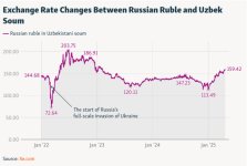 "These days, heading to Russia to earn money is also a journey into the unknown. The increased rate of the ruble creates a stimulus for migration, but increased pressure from the authorities and the risk of ending up at the front in Ukraine make it nerve-wracking and unpredictable," said Ilkhamov.