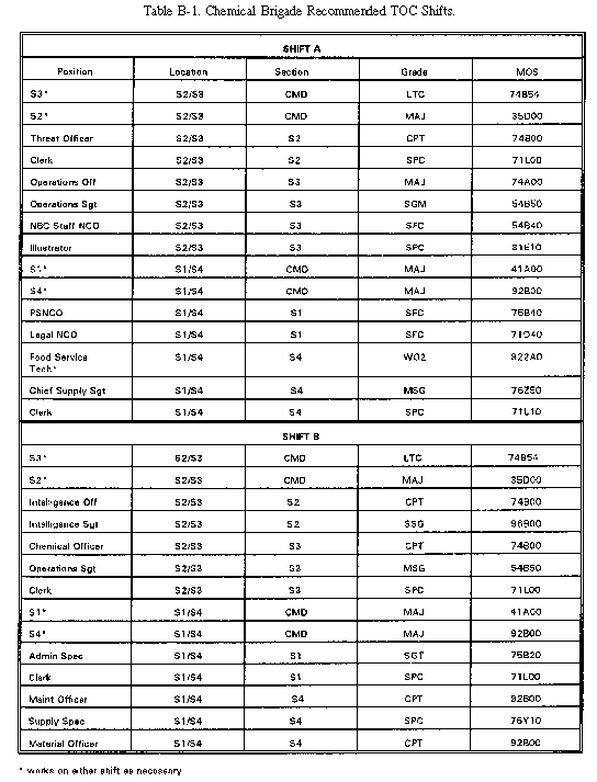 brigade and battalion TOCs. Off-duty shift personnel from the