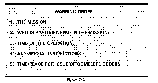 order (OPORD) and how the order is issued (oral or written). OPORDs