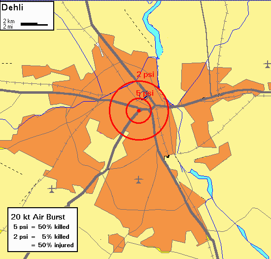 In September 2003 the Hindustan Times reported that the Indian government has decided to build two nuclear-proof bunkers to protect top leaders in case of an atomic strike. The first shelter would be built in central New Delhi at South Block, a 1931 complex next to the presidential palace that houses the prime minister's office and the foreign and defence ministries. It said the second bunker would be set up within a 400-kilometre (250-mile) radius of the capital. Potential locations in the northern states of Uttar Pradesh and Rajasthan and in the central province of Madhya Pradesh were being studied by the head of the air force, Air Chief Marshal S. Krishnaswamy, and the chief of the nuclear forces, Air Marshal Teja Mohan Asthana,